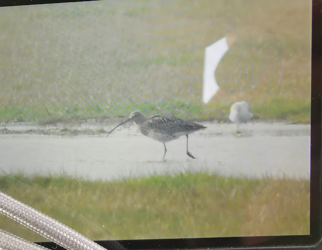 A smattering of Curlews have been seen (or heard) in flight this year, but one found by Sean walking about in the Commissioner's field on the 21st was the first on the deck, allowing Pat to twitch it for his yearlist when he got home from work!